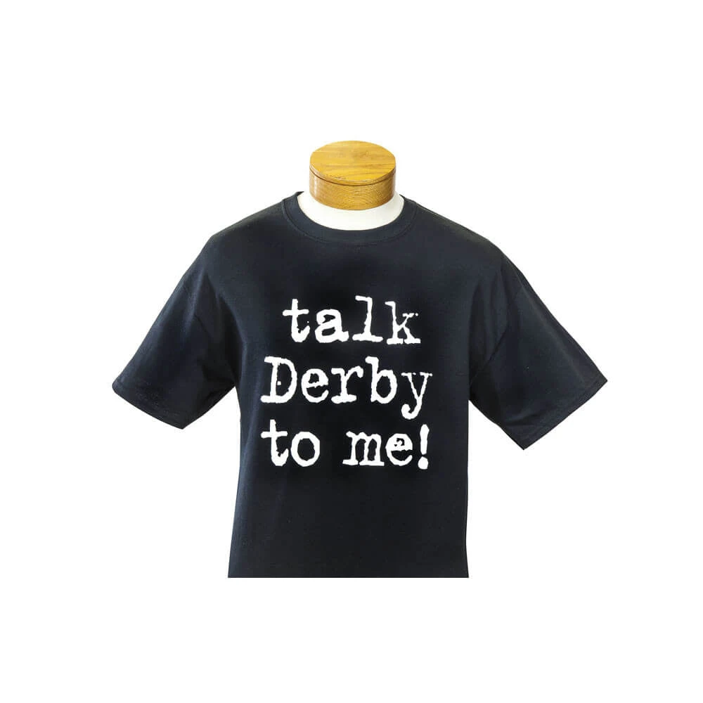Silk screened “Talk Derby To Me” print on a 100% cotton pre-shrunk shirt. Available in adult size medium, large, & extra large.