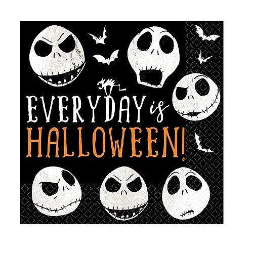 If you’re planning to throw a Jack Skellington-themed party, The Nightmare Before Christmas Lunch Napkins are must-haves! The black paper napkins feature Jack Skellington bordering an orange and white “Every Day Is Halloween!” headline. Mix and match these napkins with other Jack Skellington tableware and decorations for your The Nightmare Before Christmas party!
