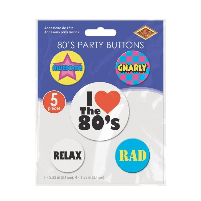 This 80’s Button Pack is the perfect way to accessorize any 80’s costume! Great to put of jean jackets or bags.