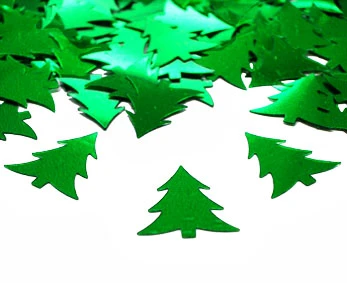 Green metallic tree confetti. (Shape may slightly differ) 1oz. bag.Â