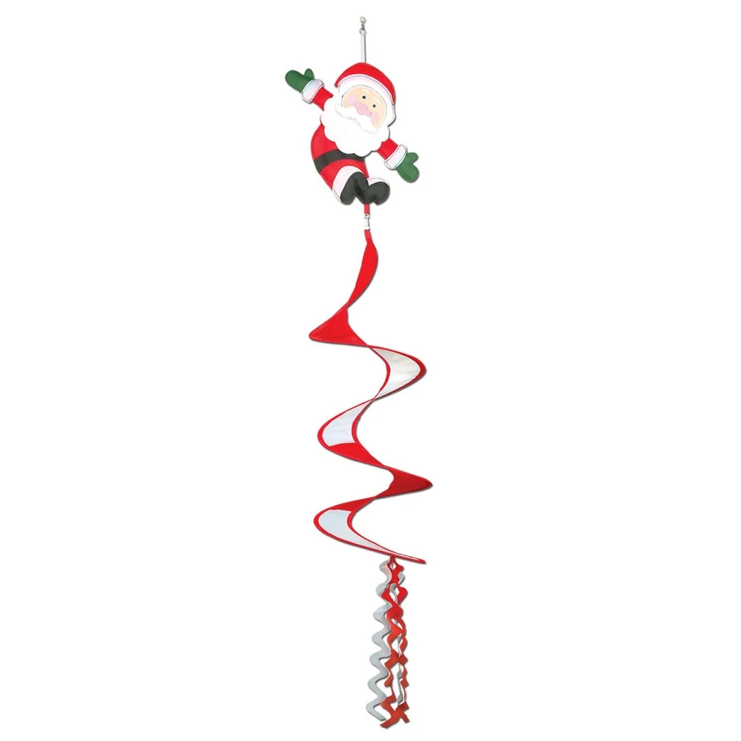 This wind-spinner features an adorable santa claus in addition to a red tail with metallic strands