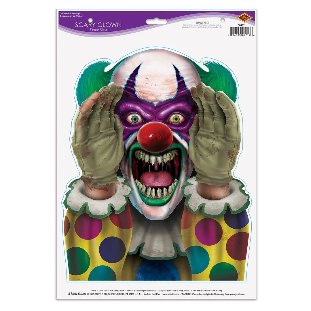 Give your guests a scare this Halloween with the Scary Clown Peeper Cling! It can be used to decorate your windows or mirrors and it will add a frightening embellishment to the room.Â