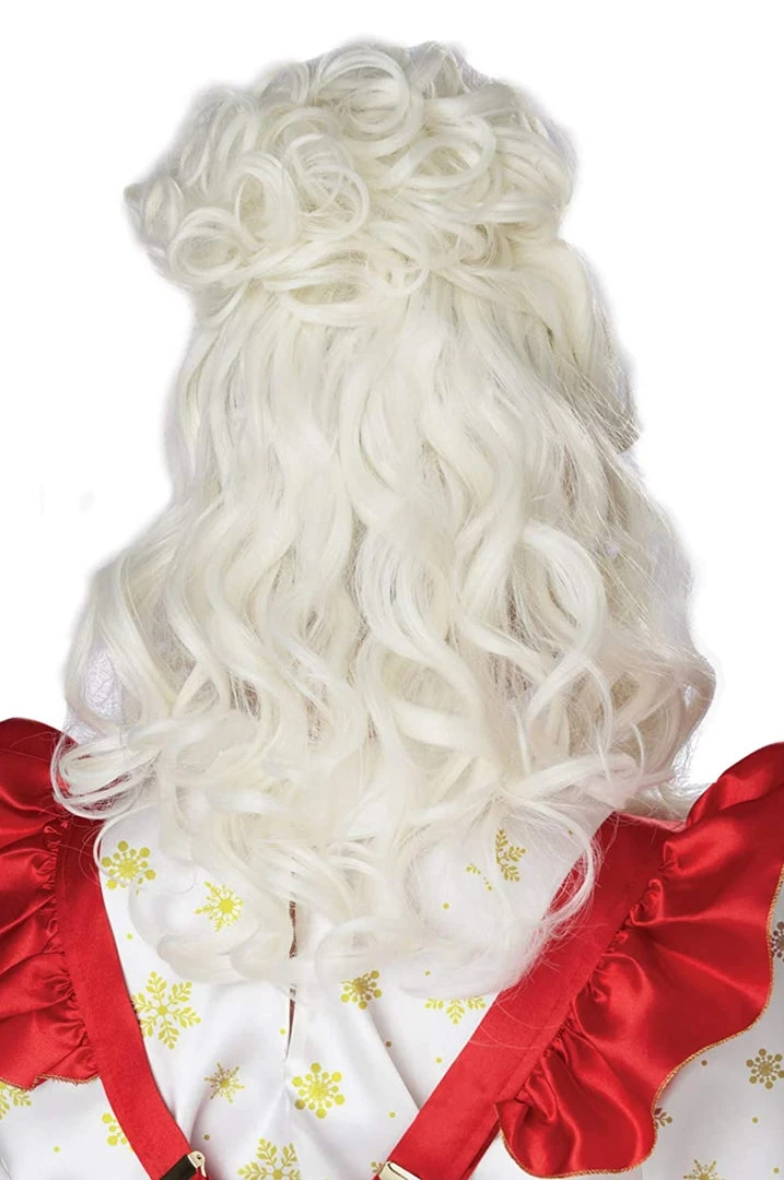 A wig fit for the most wonderful time of the year. The Mrs. Claus Wig and Bun clip is a white wavy with with a clip on bun that can be optionally worn.