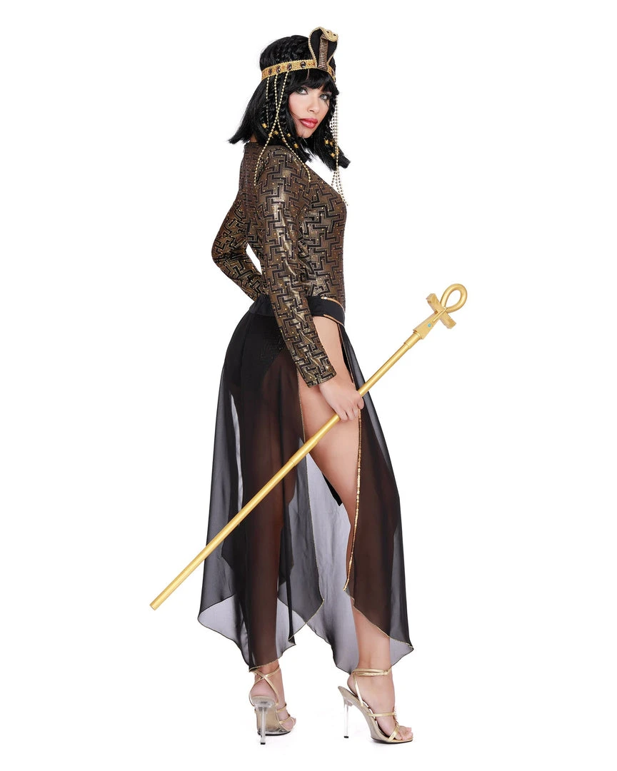 - 3-Piece set: Egyptian print bodysuit, chiffon skirt, and cobra headpiece