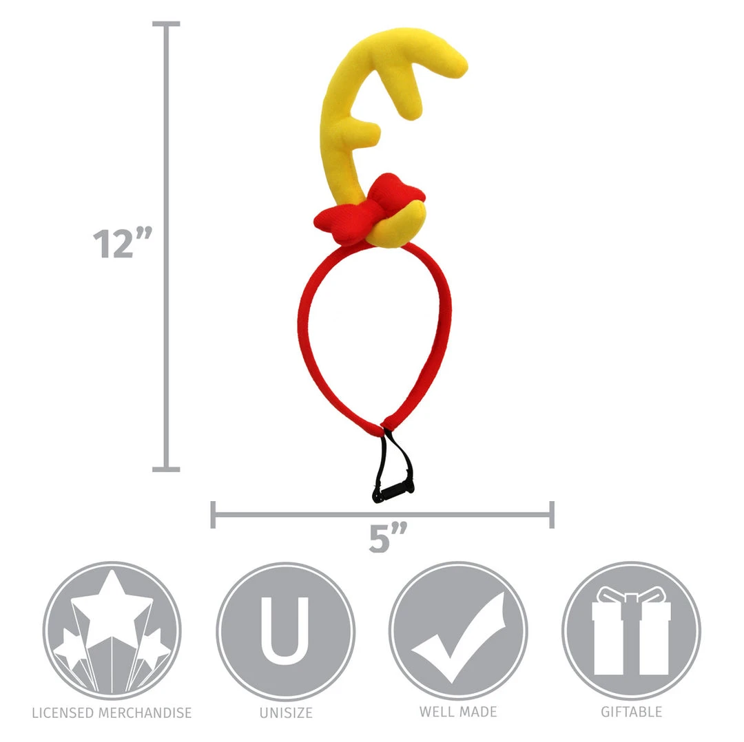 | Help the Grinch steal Christmas when you wear this Dr. Seuss Max Headband by elope. This headband features a plush yellow antler just like the one the Grinch ties to Max’s head in the beloved children’s book. You won’t need red thread to keep this horn on your head thanks to the adjustable black elastic at the base of this comfortable velboa covered headband.