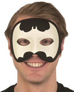 This glow in the dark half mask is the perfect masquerade mask. It has a flex formed base covered in black fabric with a silhouette of a bat that glows in the dark or black light. One size fits most.