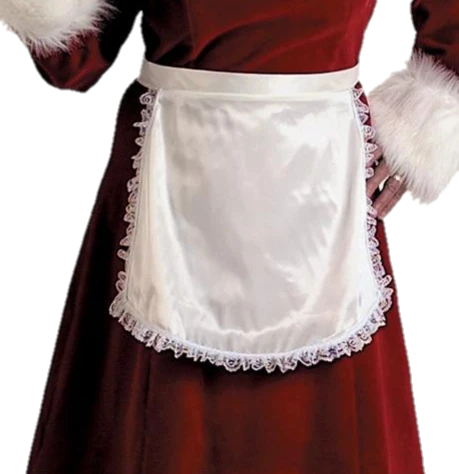 Sure, Santa Claus may be the boss, but I think we know who keeps everything running smoothly in Santa’s Workshop. Santa and Mrs. Claus definitely work as a team to take care of the reindeer, watch over the elves, make up the Naughty and Nice lists, and just about everything else. Every good Santa needs a Mrs. Claus, so don’t let your St. Nick go it alone! This deluxe satin Mrs. Claus Apron is the perfect finishing touch to all sorts of Mrs. Claus outfits! This knee-length, white satin apron has a lovely lace trim for an extra holiday feel!