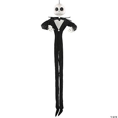 Jack from The Nightmare Before Christmas is dressed in his iconic pin stripe suit that forms to his sleek figure. Jack is dying to hang out with you and your friends. His screen accurate portrayal is instantly recognized almost anywhere and is sure to arouse some looks. He hangs down an astonishing 5 Ft tall and can be seen from a long distance off, posable arms. This is the ideal Jack Skellington decoration for any Nightmare Before Christmas fan.