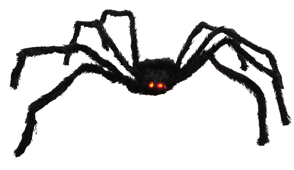 Light up long hair black spider small Size: L8 inches X W44 inches X T4 inches Needs 3 AG13 watch batteries – NOT included.