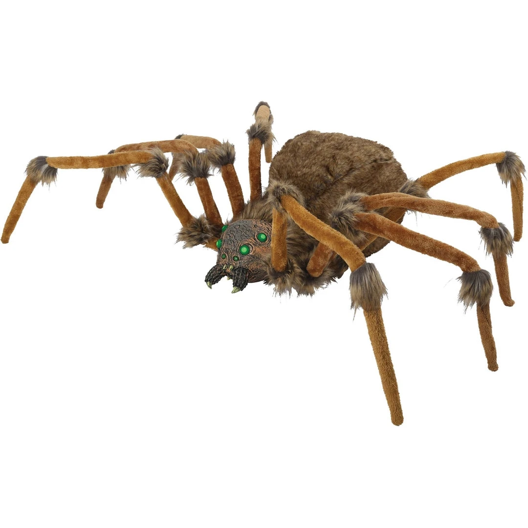 This Spider will make you scream! Features a big round furry body with green light-up eyes long legs with fur tuftsÂ