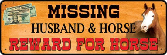 SKU: rivers-edge-6158579859639 Categories: Derby, Equestrian Gifts, Horse Racing Decor and Accessories Tags: Equestrian, Gift, Horse, Humor, Husband, Missing, Sign, Tin
