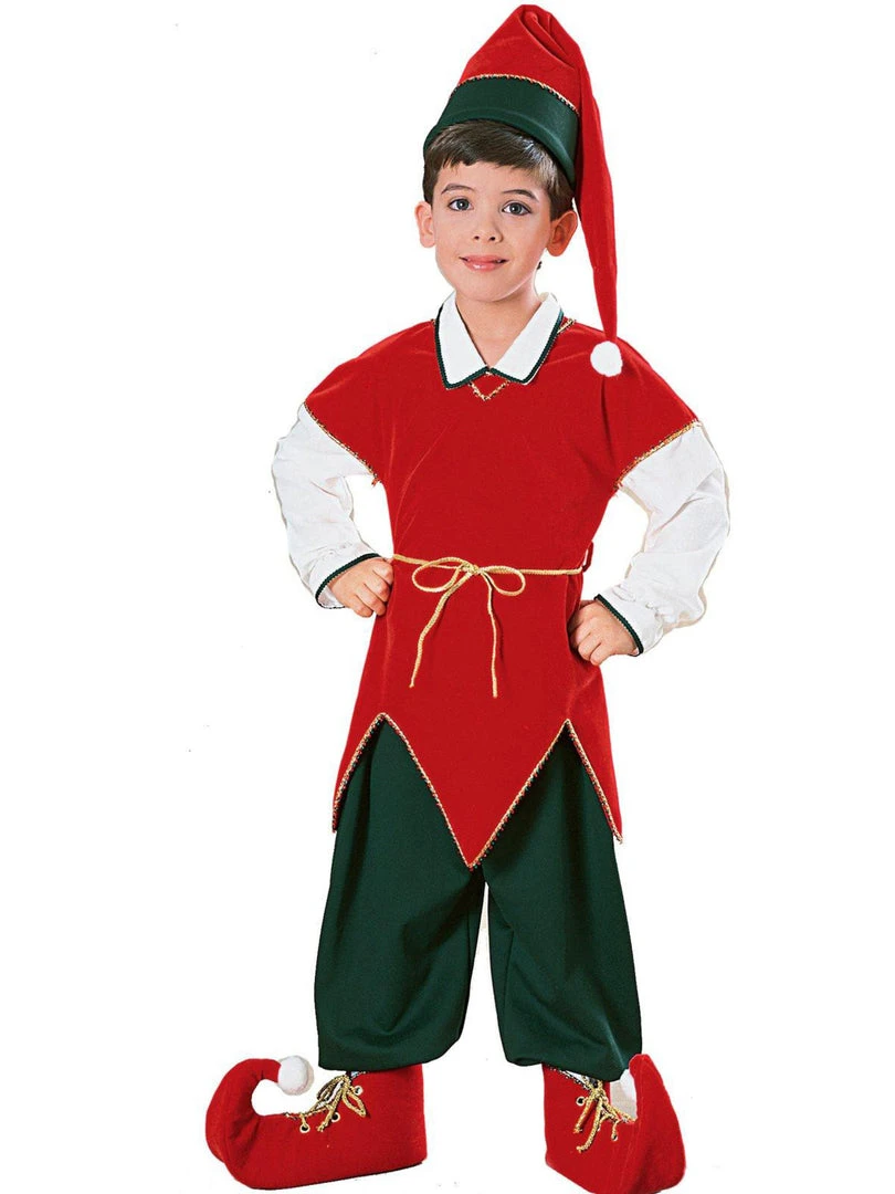 Step into Christmas this year with Velvet Elf Child Costume. Included in the set are shoes, a tunic, pants and a hat, all perfect for any Santa’s helper. The red tunic features a zigzag cut at the bottom, a gold cord belt and gold trim. The red shoes have gold laces and upturned ends accented with white pompoms. Topping off the merry look is a red and green elf hat.