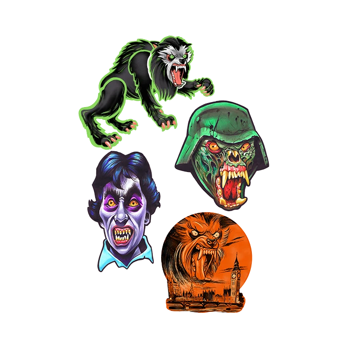 | Â Trick or Treat Studios and Universal Studios are proud to present the official American Werewolf in London Wall Decor Collection, Series 1. This amazing collection of wall decor comes with three static wall decor designs and one posable Werewolf wall decor. Each piece in this amazing collection of wall decor was designed by Marty McEwen and was drawn in a vintage Halloween Wall Decor style, similar to the classic Halloween Wall Decor from the early 60’s. All our Wall Decor is printed on thick 300gsm coated paper, perfect to reuse for many Halloween Parties to come. | ![]() |