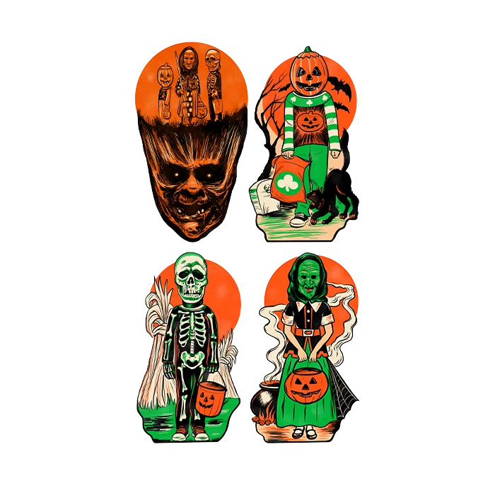 | Designed by Marty McEwen Trick or Treat Studios and Universal Studios are proud to present the official Halloween III Season of the Witch Wall Decor Collection, Series 1. This amazing collection of wall decor comes with four static wall decor designs. Each piece in this amazing collection of wall decor was designed by Marty McEwen and was drawn in a vintage Halloween Wall Decor style, similar to the classic Halloween Wall Decor from the early 60’s. All our Wall Decor is printed on thick 300gsm coated paper, perfect to reuse for many Halloween Parties to come. Halloween III Season of the Witch is a trademark and copyright of Universal Studios. Licensed by Universal Studios LLC. All rights reserved. | ![]() |