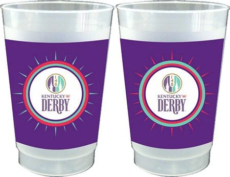 These 14 oz. frosted cups are flexible, durable, dishwasher safe and decorated with the officially licensed logo of the 148th Kentucky Derby. There are 10 cups per package.