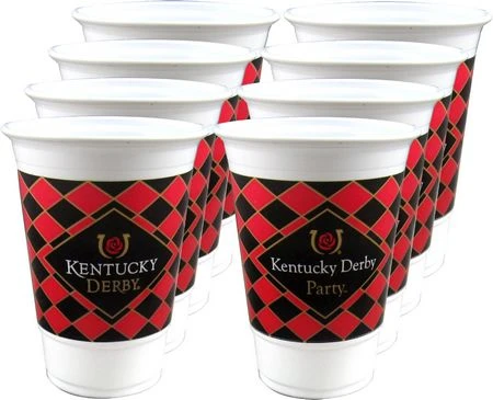 These 16 oz. cups are decorated with the officially licensed Kentucky Derby Icon logos. There are 8 non-dated cups per package and they can be used by Kentucky Derby fans at celebrations throughout the year.